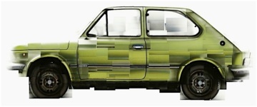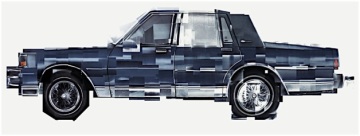 | Inspiriert von Hockneys Polaroid-Arbeiten, Google Earth und auch der Nasa, welche die Mondoberfläche von 1966-68 mittels ihrer Sonden mit einer Genauigkeit von 60m kartierte, tastet Christian Grund die Oberfläche seiner Zielobjekte mit einem A4-Scanner ab und setzt die so entstandenen 120-250 Scans wieder zu einem Gesamtbild zusammen. Im Gegensatz zu seinen Vorgängern verzichtet er jedoch auf den gezielten Einsatz von Tiefenschärfe und Licht. Denn der Scanner erfasst nur das mit höchster Präzision, was er auch berührt. Die Distanz zum Glas führt zu Unschärfe und Verzerrung. Von Weitem betrachtet entsteht so der Eindruck eines Icons, wie wir es von Computerprogrammen kennen, während bei näherer Betrachtung der z.T. enorm hohe Detaillierungsgrad verblüfft. Die Transferleistung des Fotografen, die Kamera durch einen billigen Hand-Scanner zu ersetzen, lässt eine selbstironische Haltung des Künstlers gegenüber seiner Profession erahnen. Humorvoll ist auch die Wahl seiner Motive: Ikonen der Automobilgeschichte und solche, die es werden wollten. Motive also, die bei Jungs und Junggebliebenen per se Eindruck hinterlassen und in der Arbeit von Christian Grund aus einem erfrischend neuen Blickwinkel gezeigt werden. | ||